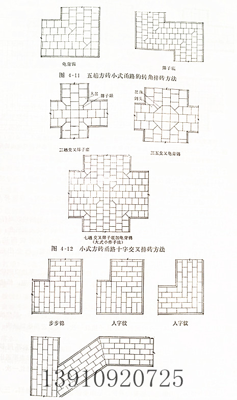 金砖墁地的操作方法与细墁地面大致相同。不同的是:(1)金砖墁地一般不用泥,而用干砂或纯白灰,如砂子或白灰过多时,可用铁丝将砂或灰轻轻勾出。(2)如果用干砂铺墁,每行刹趟后要用灰“抹线”,即用灰把砂层封住,不是外流。(3)将钻生改为“钻生泼墨”作法。在钻生之前要用黑矾水涂抹地面。黑矾水的制作方法是:把10份黑烟子用酒或胶水化开后与1份黑帆混合,将红木刨花与水一起煮熟,待水变色后将刨花除净,然后把黑烟子和黑帆倒入红木水中一起煮熬直至变为深黑色为止。趁热把制成的黑矾水泼洒咋地面上(分两次泼),待地面干透后再钻生。钻生后还可以再烫蜡,即将四川白蜡融化在地面上,然后用竹片把蜡铲去,并用软布将地面擦亮。金砖地面在泼墨也可以不钻生而直接烫蜡。