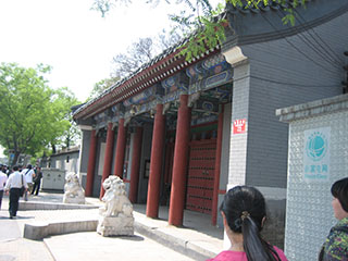 以北京为主的周围地区四合院,以中轴为对称,大门开在正房方向的东南方向,大门不与正房相对,也就是说,大门开在院之东南。这是根据八卦的方位,正房坐北为坎宅,如做坎宅,必须开巽门,“巽”者是东南方向,在东南方向开门财源不竭,金钱流畅,所以要做“坎宅巽门”为好。因此北京四合院大门开在东南方向。