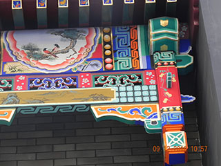 6、打点刷浆:上述完成后应及时打点修理。眉子、当沟及排山勾滴部分都应刷烟子浆,其余部分刷月白浆。