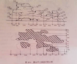 山脚平面采用相互之间凹凸错开布置,如前后错落、左右错落、深浅错落、曲直错落、线段长短错落等处理,可使假山形状具有丰富的变化效果。
