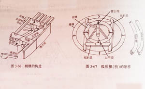 弧形檩(枋)是指在呈圆形或扇形建筑中所用的檩(枋)木,它的做法与檐金檩(枋)相同,只是应
