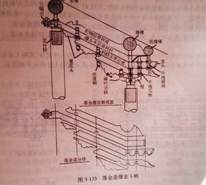 挑金造做法斗栱的结构,是在落金造做法的基础加以适当改进而成,改进的栱件主要是两个方面:
