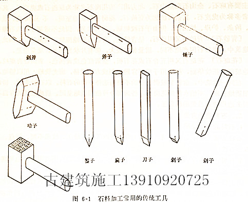 2.刺点或打道以找平为目的打道又称为“创道”。刺点或打道的主要目的都是将石面找平,除汉白玉等软石料外,一般应以刺点为主。如石料表面上弹出若干条直线,按线打道。