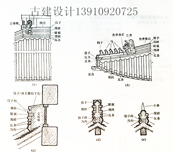 1.戗脊兽应比垂脊略低。一般说来,瓦件规格可以一样,只在盖脊筒瓦的睁眼上适当减少就可以啦。