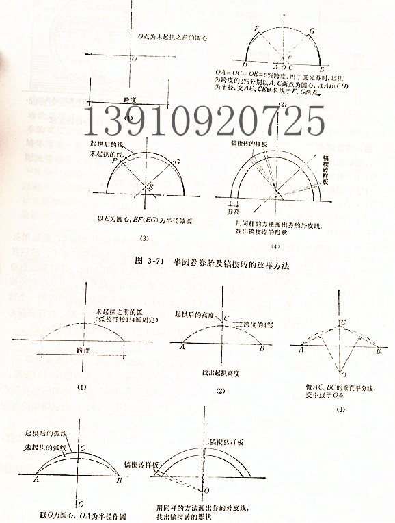 (4)在实际操作中,为避免误差,可将计算后确定的每块砖的准确位置点画在劵胎上。