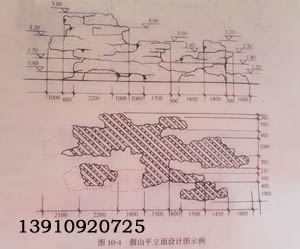 (2)斜面层叠:将山石倾斜叠砌成一定斜角,使山体具有斜向飞动感。