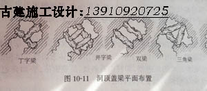 根据石长和洞宽可采用单梁式、双梁式、丁字梁式、三角梁式、井字梁式和藻井梁式。