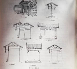 垂花门的类型,从正面看均大同小异,但从屋顶构架的不同常分为四种,即:单排柱担梁式、一殿一卷式、多檩单卷式和多檩廊罩式。