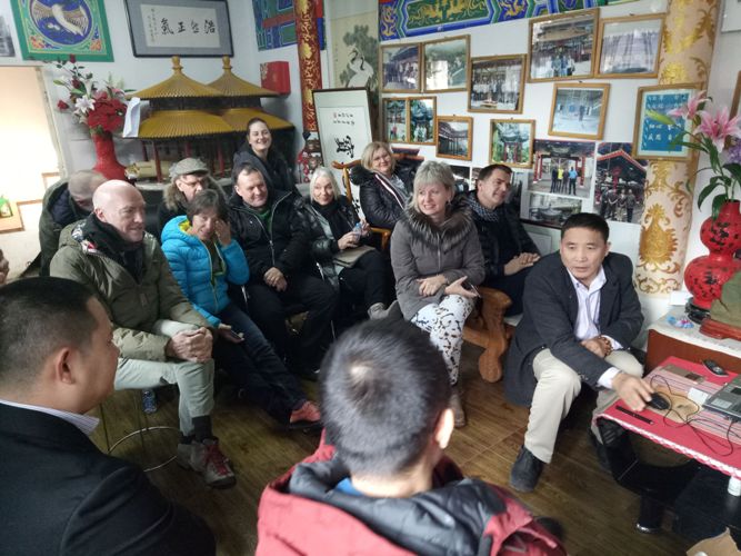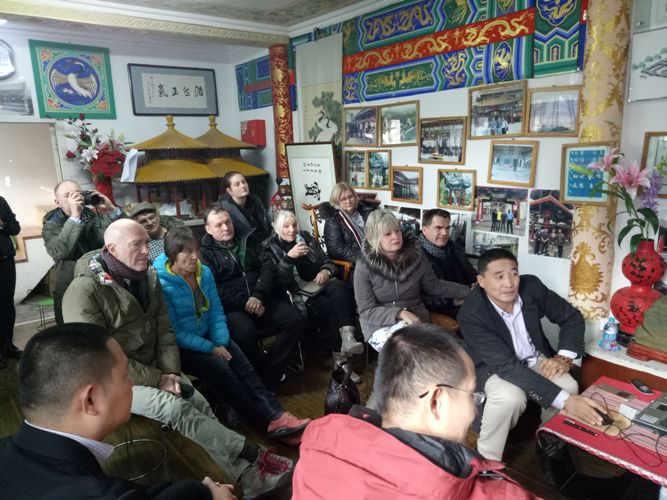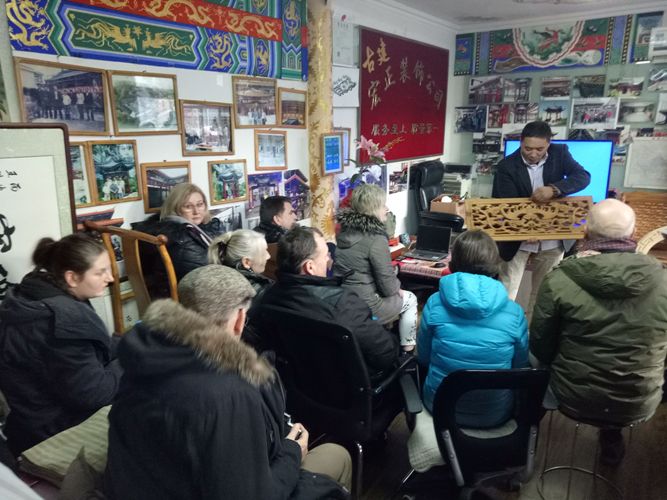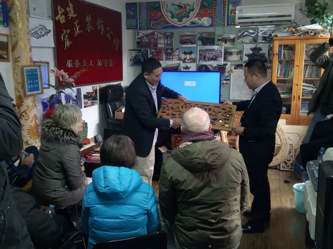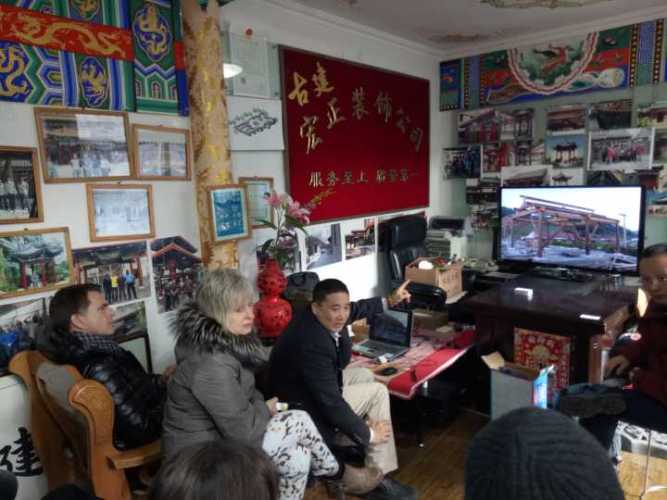 德国代表们正在认真听取我公司负责人讲解中国传统古建筑:
